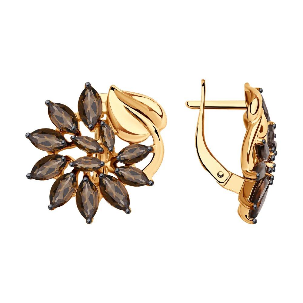 Серьги из серебра с раухтопазами SOKOLOV 92021579 серебро с позолотой, с английским замком