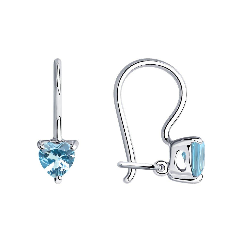 Серьги из серебра с голубыми фианитами 94020586 вставка , с французким замком
