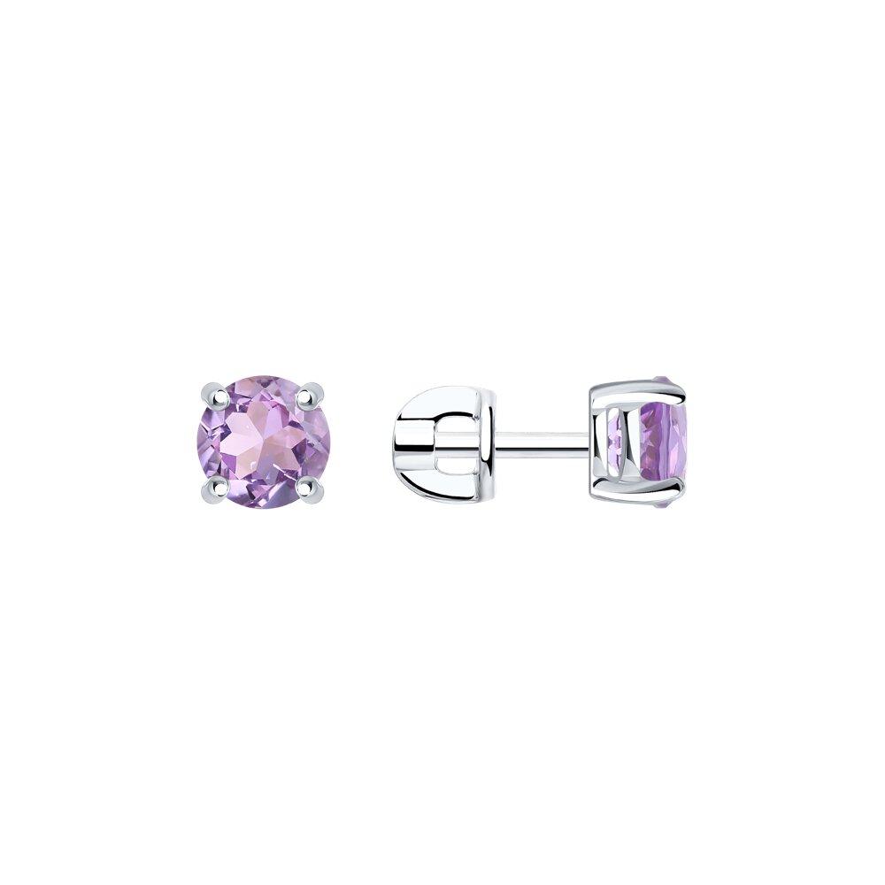 Серьги-пусеты из серебра с аметистами SOKOLOV 92020037 серебро с родием, продевки