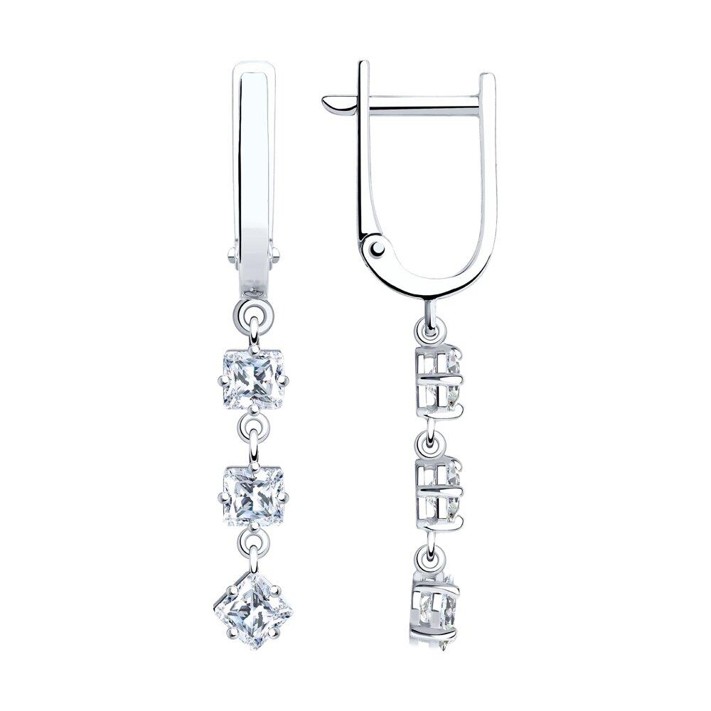 Серьги длинные из серебра с фианитами SOKOLOV 94020515 серебро с родием, с английским замком