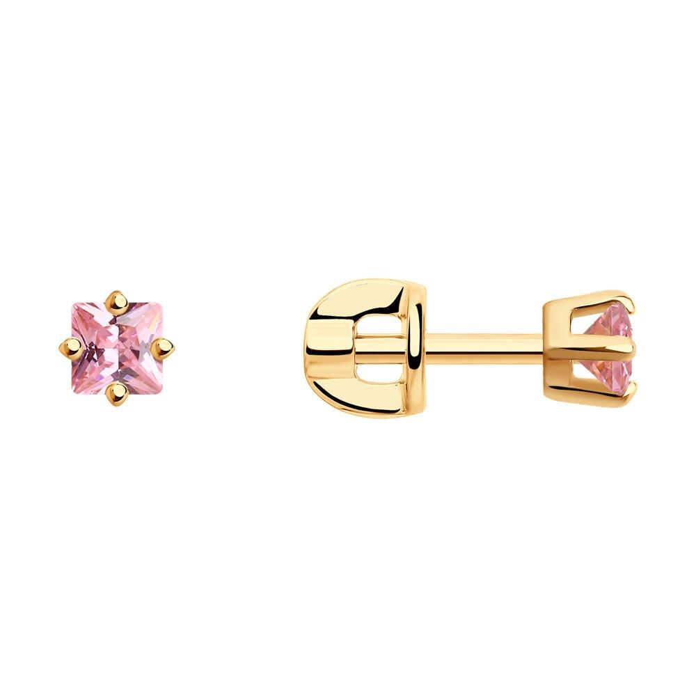 Серьги-пусеты из золочёного серебра с розовыми фианитами SOKOLOV 93020053 серебро с позолотой, продевки