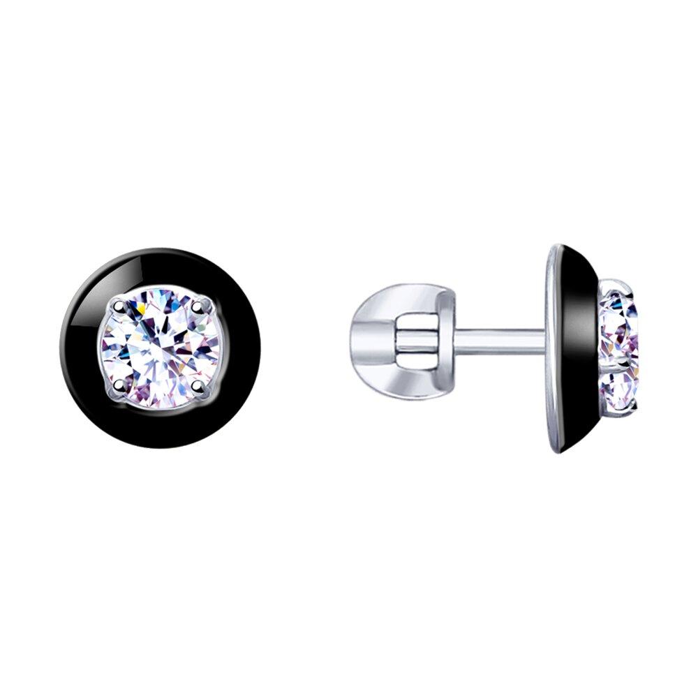Серьги из серебра с эмалью и фианитами