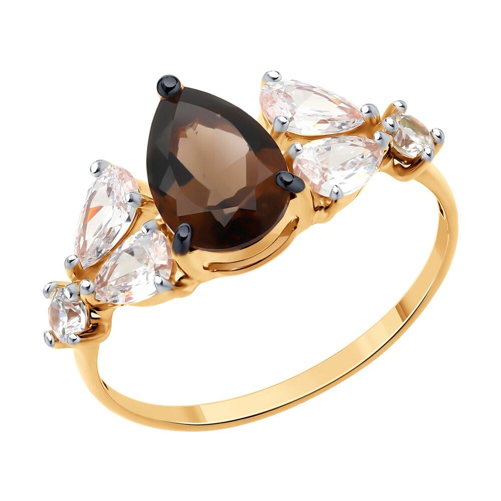 Кольцо из золочёного серебра с раухтопазом и фианитами 92014452 вставка