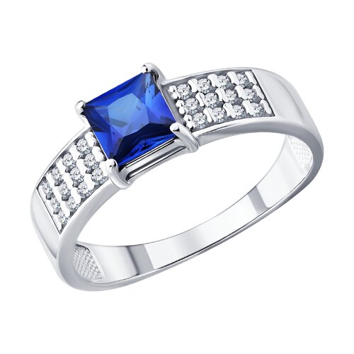 Кольцо из серебра с сапфиром и фианитами