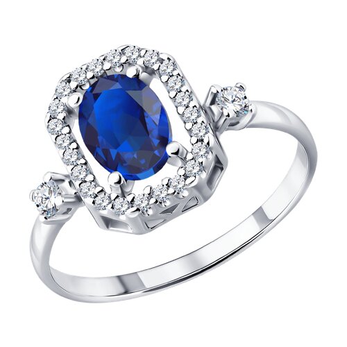 Кольцо из серебра с сапфиром и фианитами