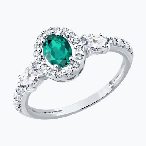 Кольцо из серебра с изумрудом и фианитами