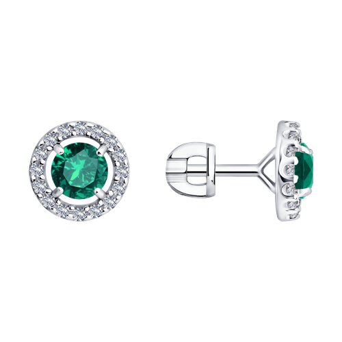 Серьги из серебра с изумрудами и фианитами