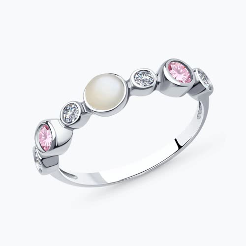 Кольцо из серебра с лунным камнем и фианитами