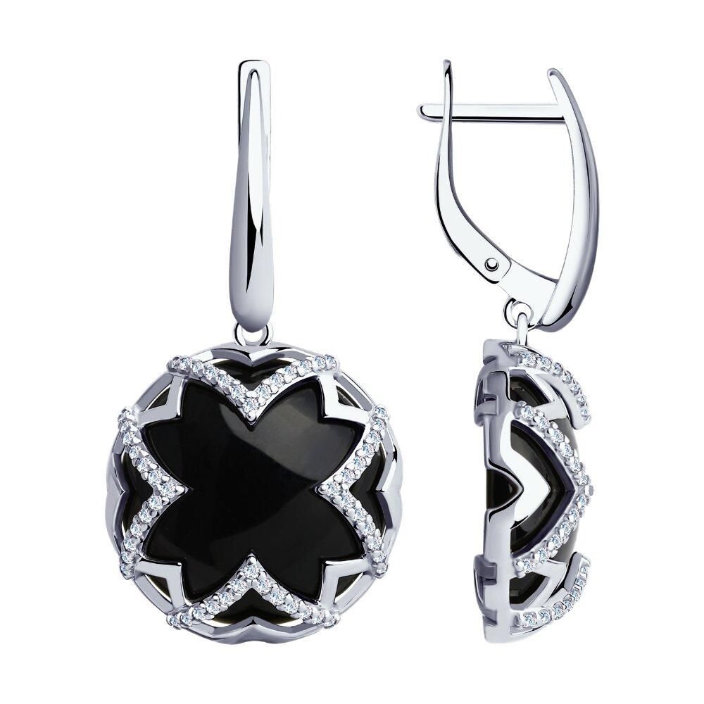 Серьги из серебра с агатами и фианитами