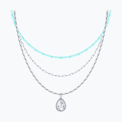 Колье из серебра с амазонитом и фианитами
