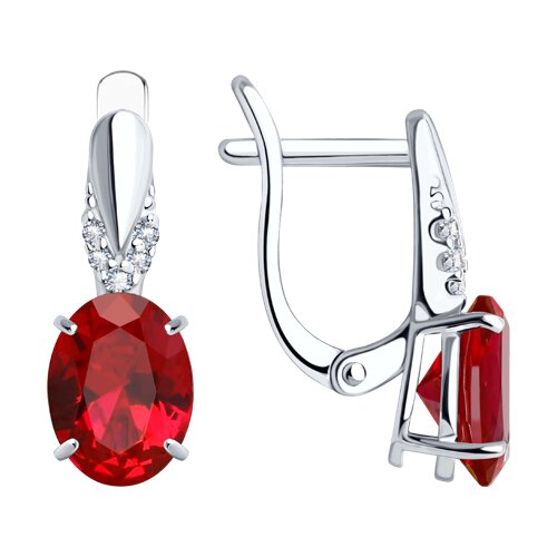 Серьги из серебра с корундами рубиновыми (синт.) и фианитами