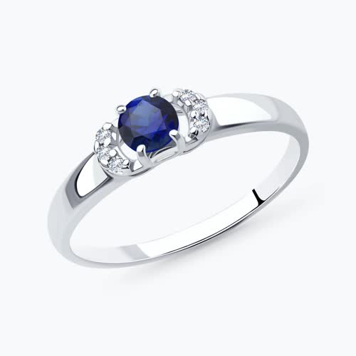 Кольцо из серебра с корундом сапфировым (синт.) и фианитами