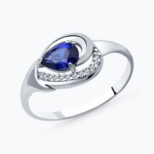 Кольцо из серебра с синим корунд (синт.) и фианитами