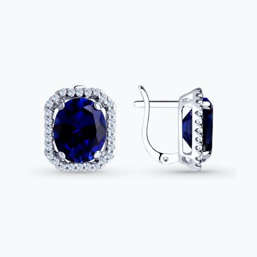 Серьги из серебра с корундами сапфировыми (синт.) и фианитами