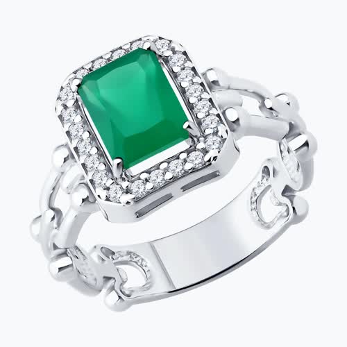 Кольцо из серебра с агатом и фианитами