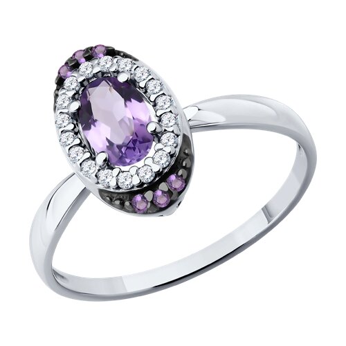 Кольцо из серебра с аметистом и фианитами