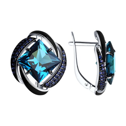 Серьги из серебра с эмалью с синими ситаллами и синими фианитами