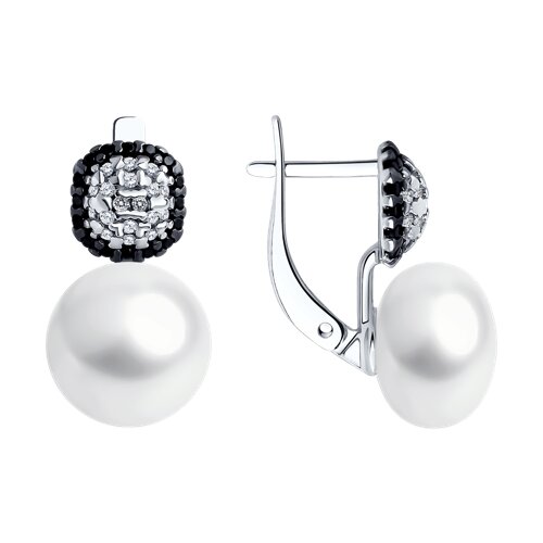 Серьги из серебра с жемчугом и фианитами