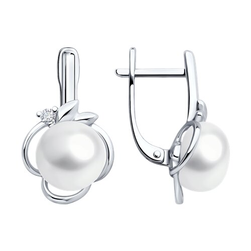 Серьги из серебра с жемчугом и фианитами