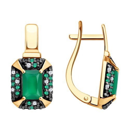 Серьги из золочёного серебра с агатами и фианитами