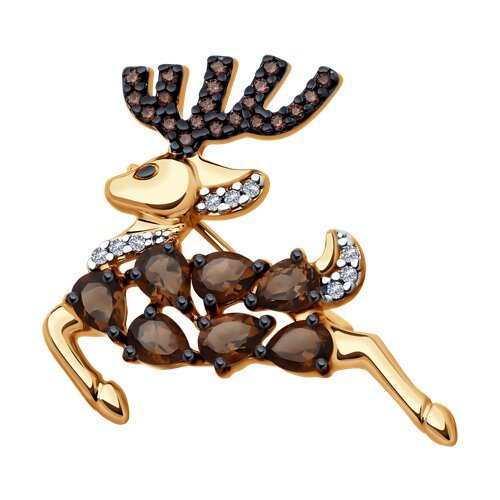 Брошь из золочёного серебра с раухтопазами и фианитами