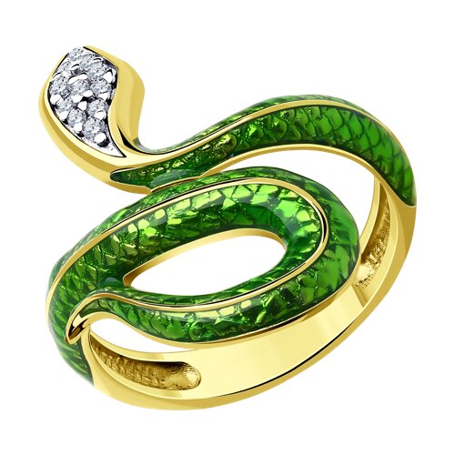 Кольцо из золочёного серебра с фианитами и эмалью