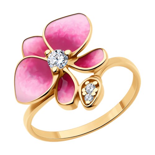 Кольцо из золочёного серебра с фианитами и эмалью