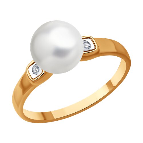 Кольцо из золочёного серебра с бриллиантами и жемчугом