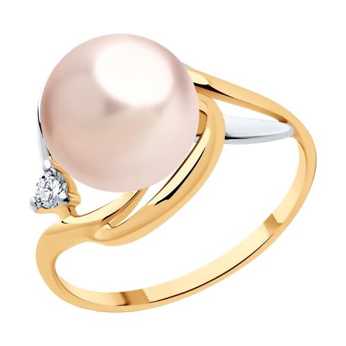 Кольцо из золочёного серебра с жемчугом и фианитом