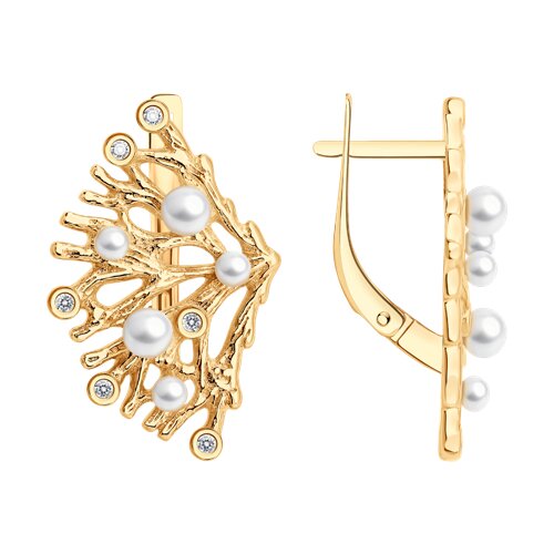 Серьги из золочёного серебра с жемчугом и фианитами