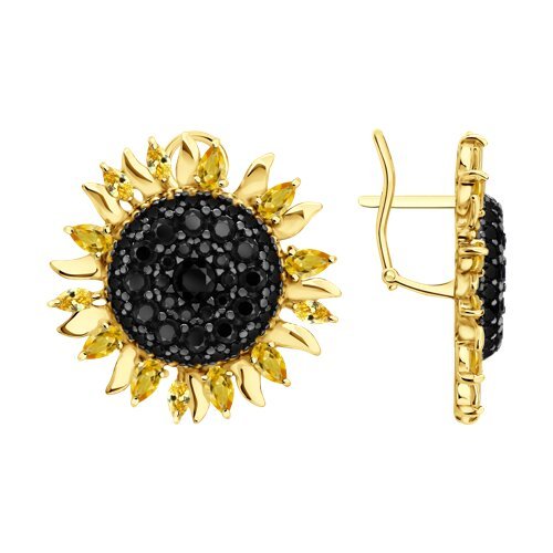 Серьги из золочёного серебра с цитринами и фианитами