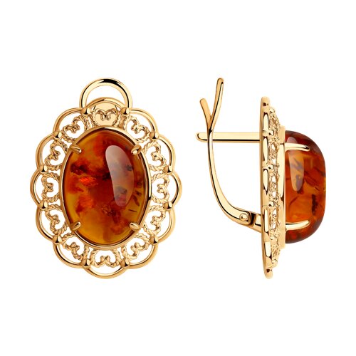 Серьги из золочёного серебра с янтарём
