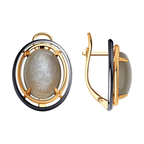Серьги из золочёного серебра с луннными камнями