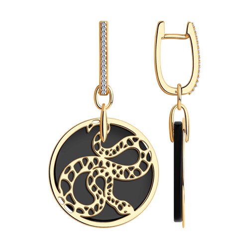 Серьги из золочёного серебра с агатами и фианитами