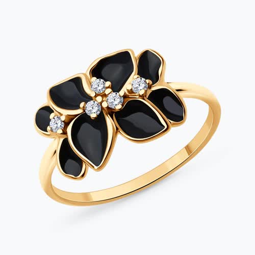 Кольцо из золочёного серебра с фианитами и эмалью