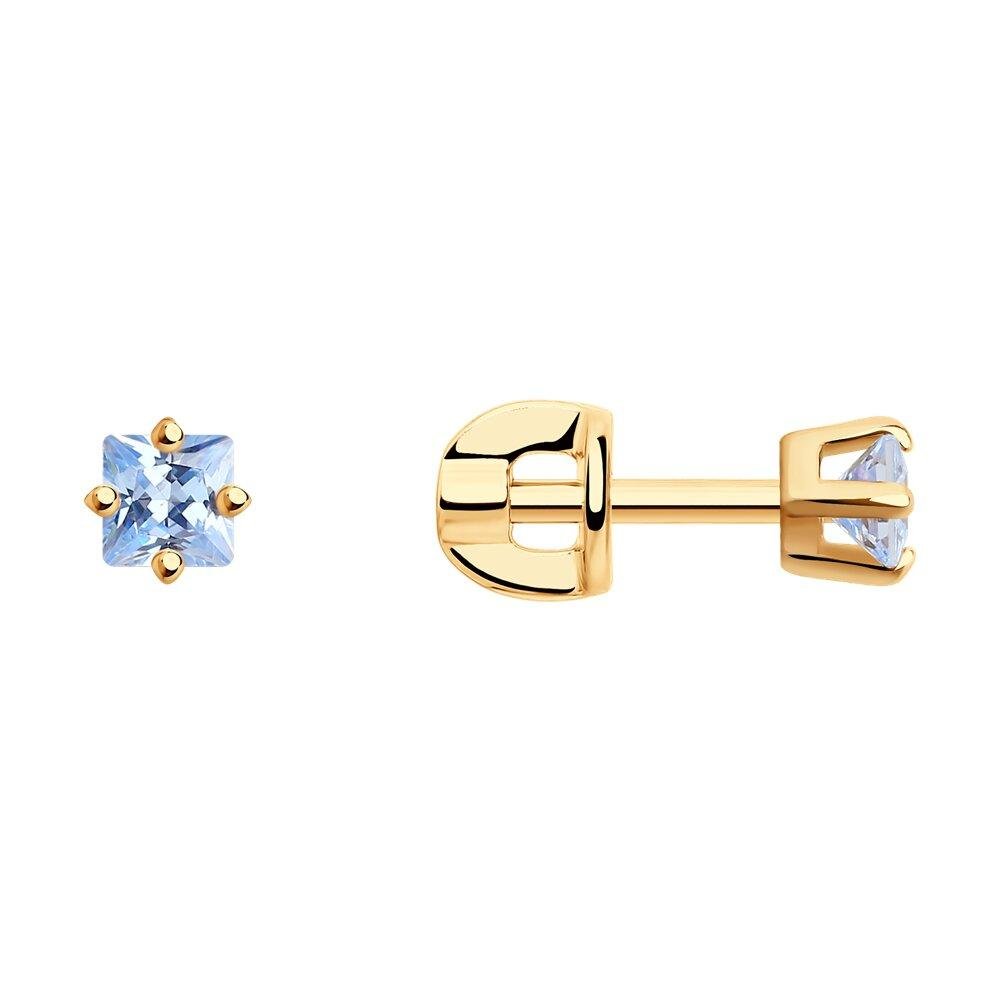 Серьги-пусеты из золочёного серебра с голубыми фианитами