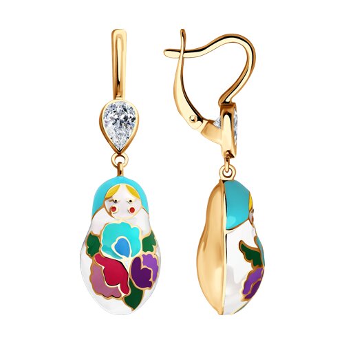 Серьги длинные из золочёного серебра с эмалью и фианитами