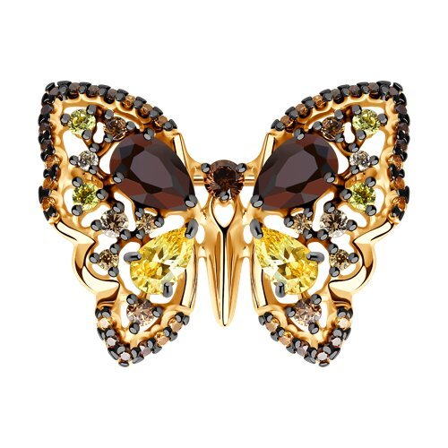 Брошь из золочёного серебра с жёлтыми и коричневыми фианитами