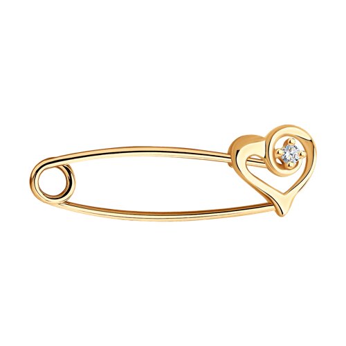 Брошь из золочёного серебра с фианитом