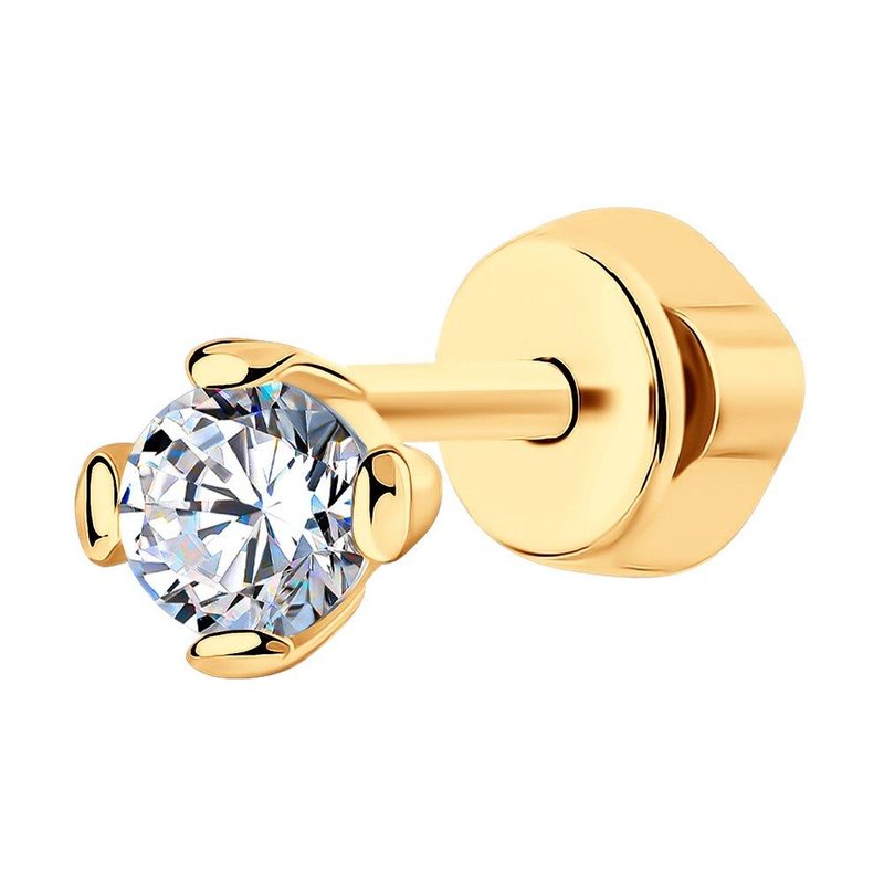 Серьга одиночная из золочёного серебра с фианитами