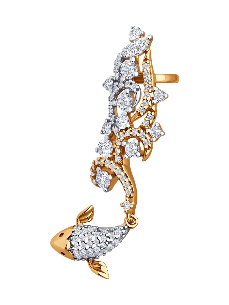 Серьга из золочёного серебра с фианитами