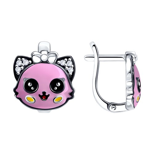 Серьги из серебра с фианитами и эмалью