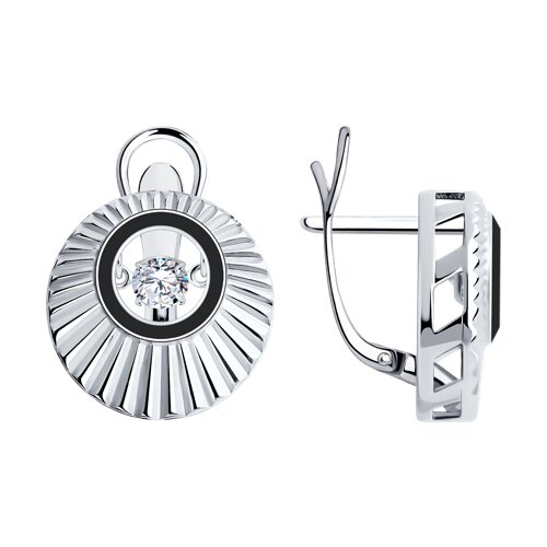 Серьги из серебра с фианитами и эмалью