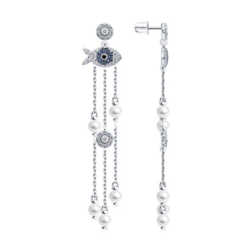Серьги из серебра с синтетическим жемчугом и фианитами