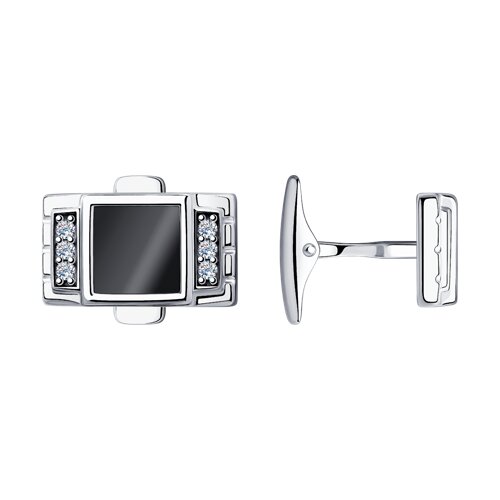 Запонки из серебра с ониксами и фианитами