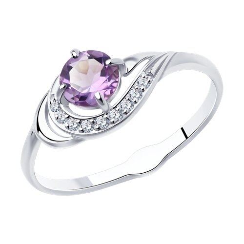 Кольцо из серебра с аметистом и фианитами