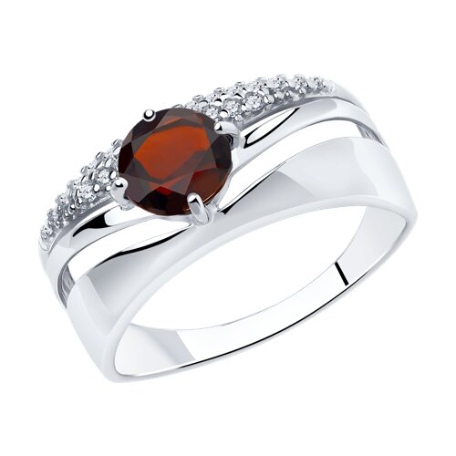 Кольцо из серебра с гранатом и фианитами