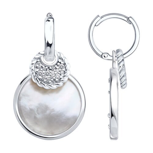 Серьги из серебра с перламутром и фианитами