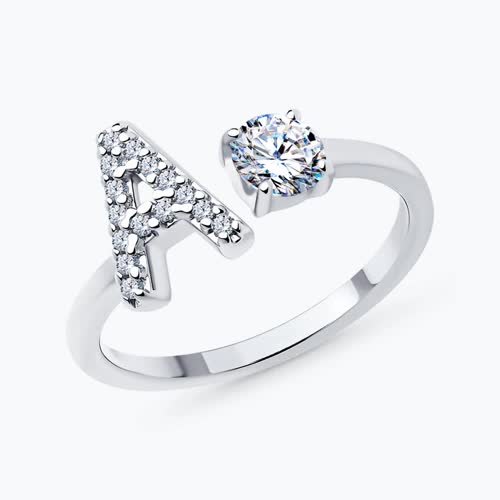 Кольцо из серебра с фианитами с буквой «А»
