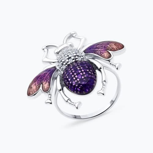 Кольцо из серебра с фианитами и эмалью